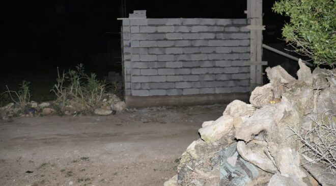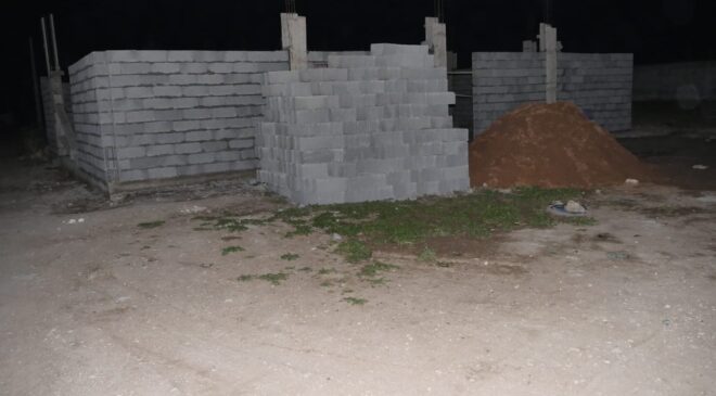 مراحل بناء المنزل العشوائي في ملكية النافذ ” المشعوذ” فوق الطريق: